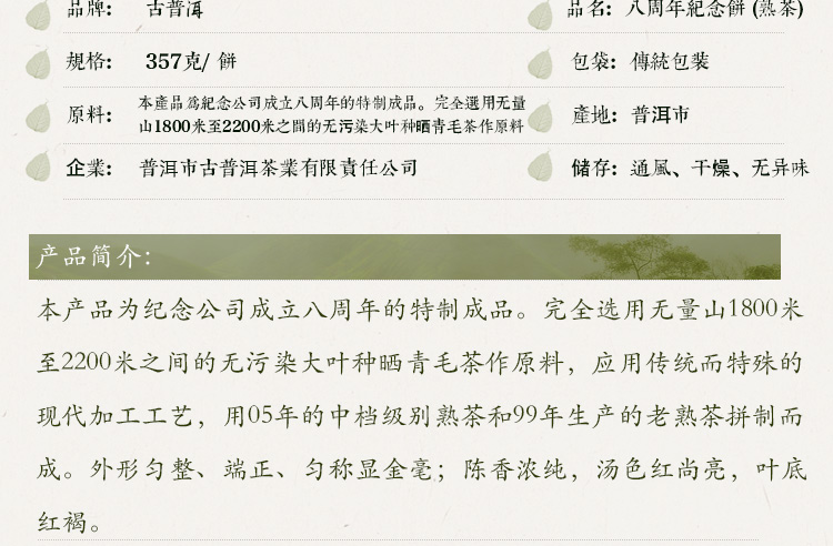 八周年紀念餅 357克熟餅-2007年